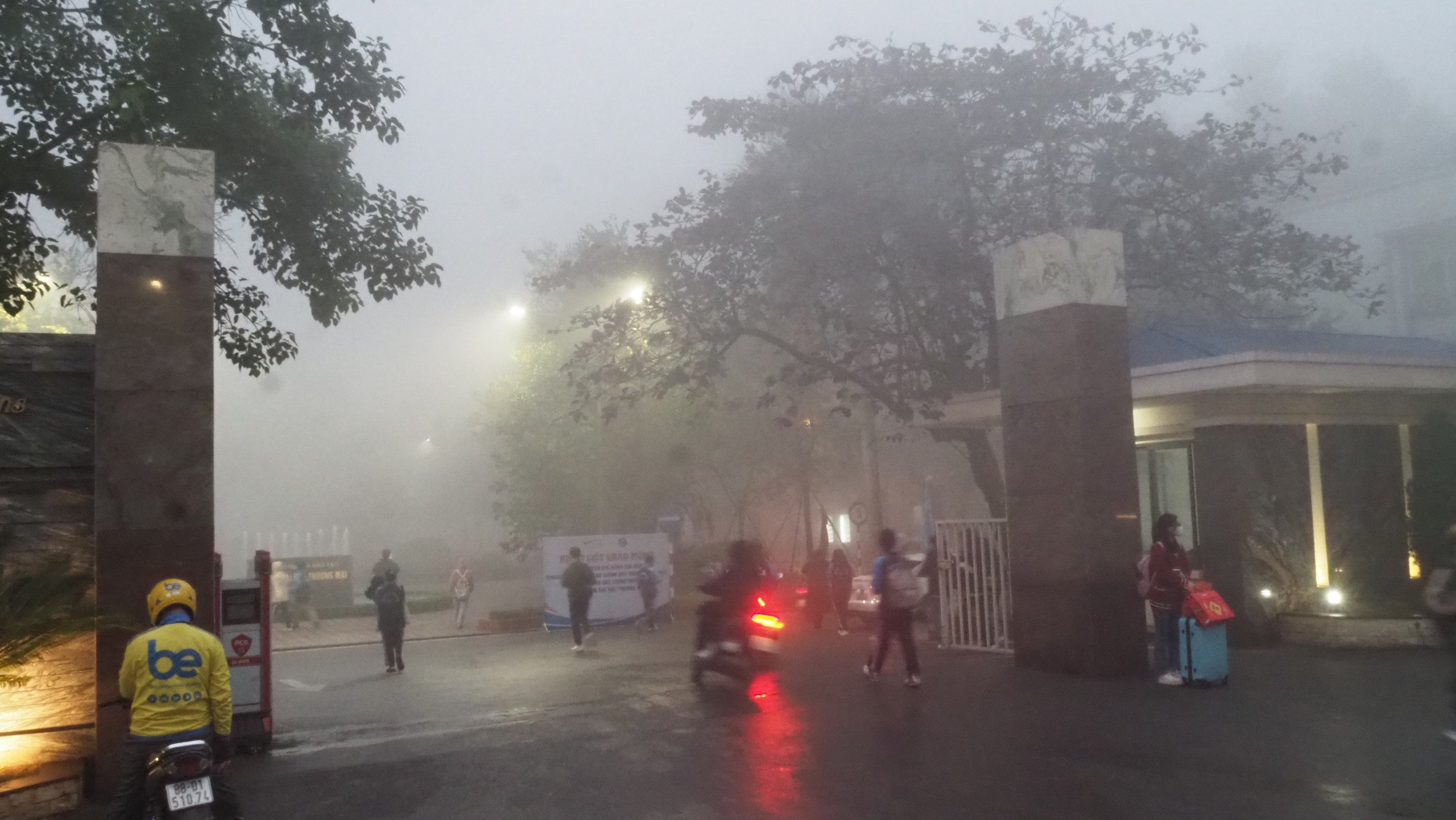 Lúc 8h, chỉ số chất lượng không khí AQI tại trạm cổng Đại học Bách khoa Hà Nội trên đường Giải Phóng là 228 tương đương với mức rất xấu. Ô nhiễm không khí ở trạm này bắt đầu lên ngưỡng này từ 3h. Trạm đo tại công viên Nhân Chính trên đường Khuất Duy Tiến cũng ghi nhận chỉ số là 182 tương đương mức xấu, trạm 556 Nguyễn Văn Cừ là 177.